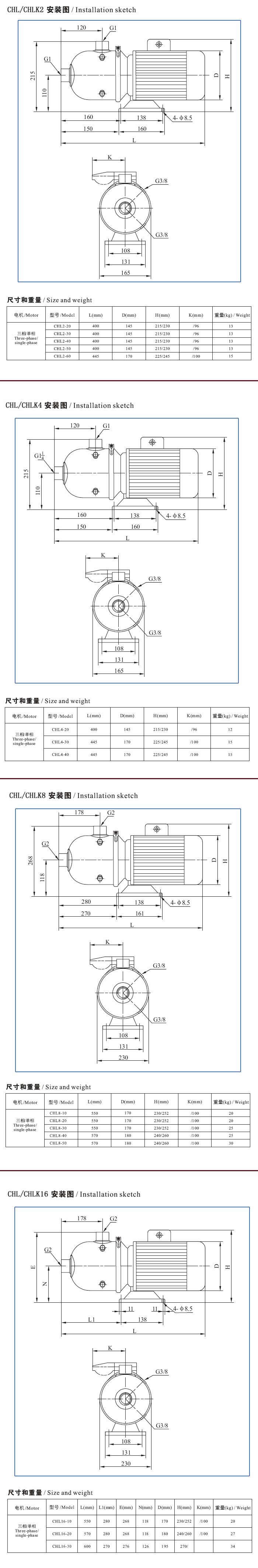 CHL,CHLK和CHLF(T)型泵主要用于家庭型中央空调循环及工业上液体的传输。如脱矿物质水、软水、净化系统、轻油等的循环和增压。