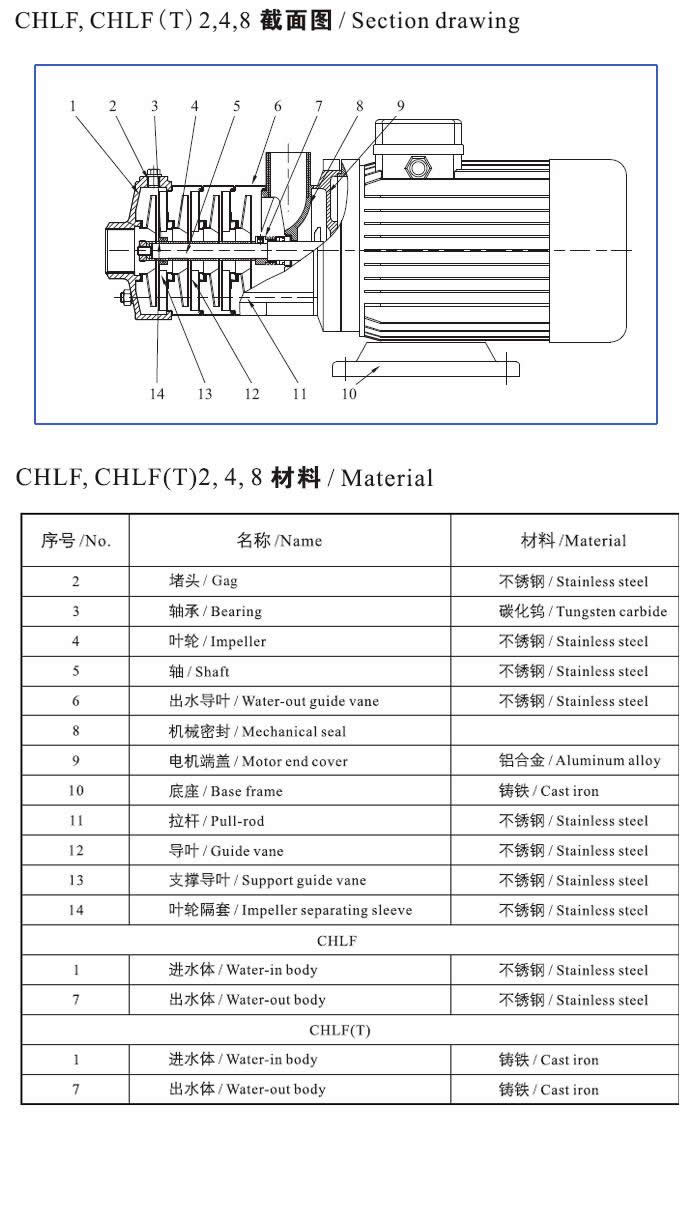 CHLF,CHLF(T)轻型段式多级离心泵(结构图)