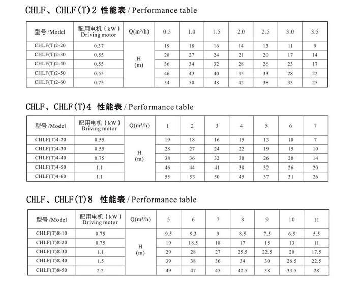 CHLF,CHLF(T)轻型段式多级离心泵(性能参数)
