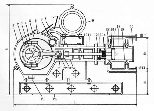 14.垫料 15.单向球阀 16.活塞环 17.活塞 18.泵体 19.单向球阀座 20.泵盖 21.连杆销 22.连杆水上铜套 23.十字头 24.往复缸 25.方油孔 26.底盘