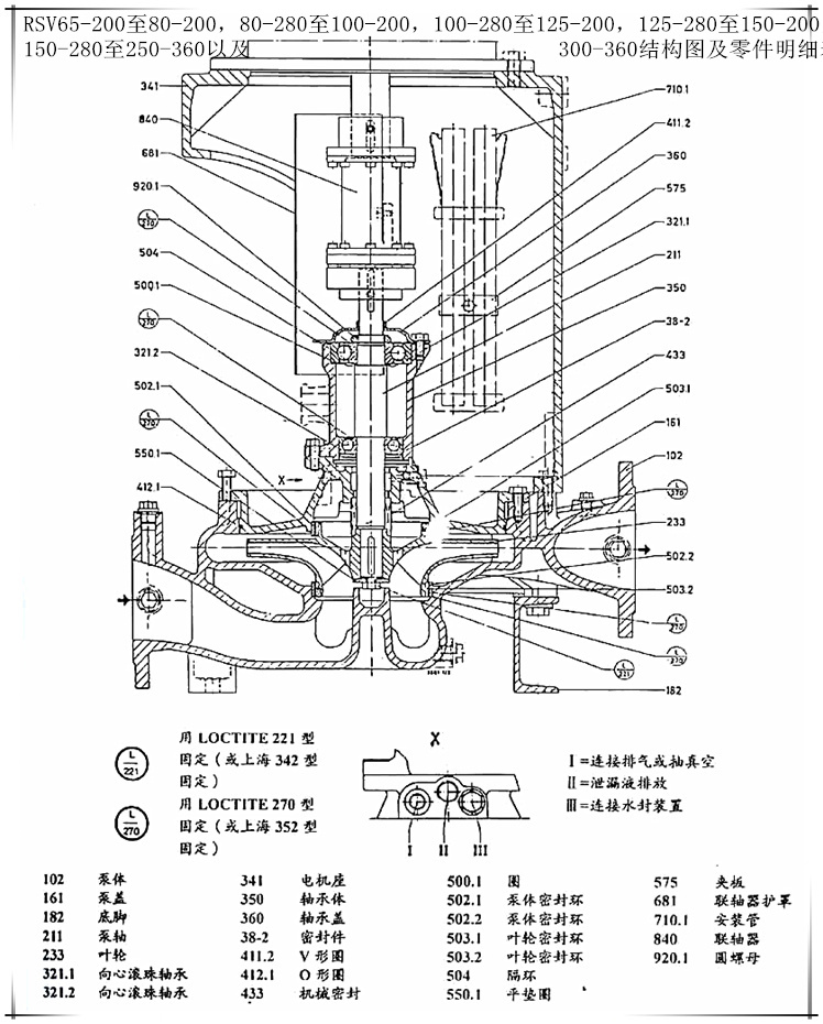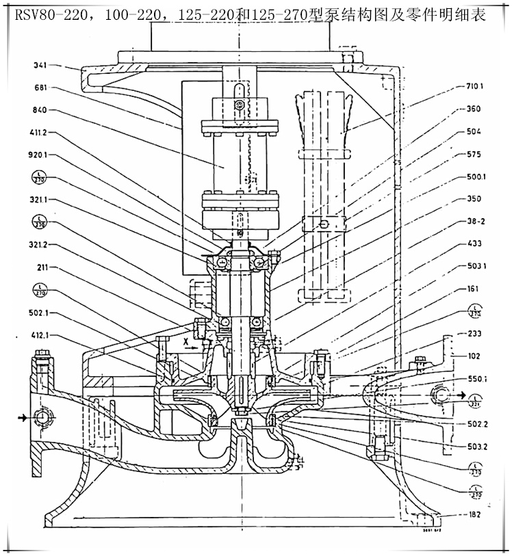 3.叶轮:RSV300-300,350-280和350-360型是双吸叶轮。RSV150-220和150-270型单吸叶轮带有诱导轮。其它型号都是单吸叶轮。