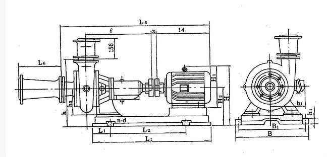 泵出口垂直向上,也可装成水平方向,本泵由弹性联轴器直接传动(亦可才艮据需要改用皮带传动)。